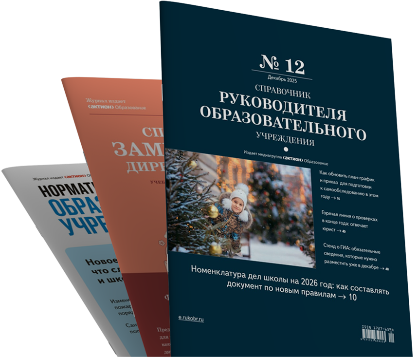 Подпишитесь на журнал «Справочник руководителя образовательного учреждения» и получите журналы «Справочник заместителя директора школы» и «Нормативные документы образовательного учреждения» без доплат
